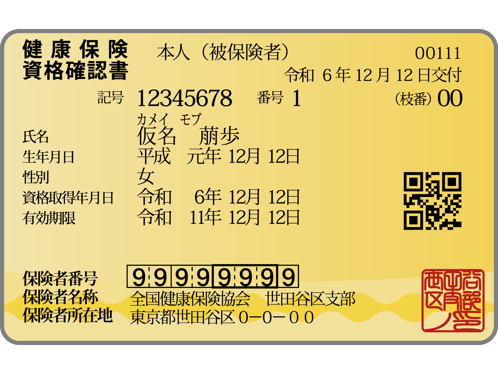 - 協会けんぽの場合:黄色のカード